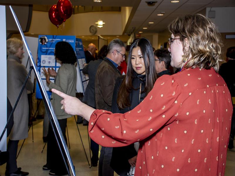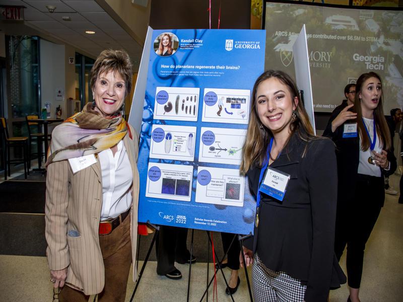 In 2022, ARCS Atlanta has 52 Scholars in many different disciplines. Second- and third-year scholars exhibited poster displays in the atrium of the IBB. The first-year scholars networked and chatted informally with guests. The University of Georgia (UGA) was our 2022 featured school. A video loop introduced each scholar and highlighted ARCS Atlanta and UGA.