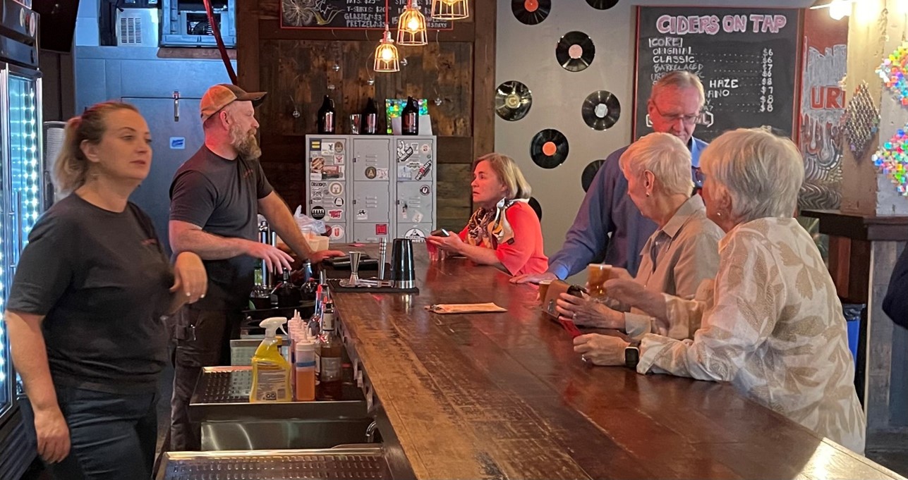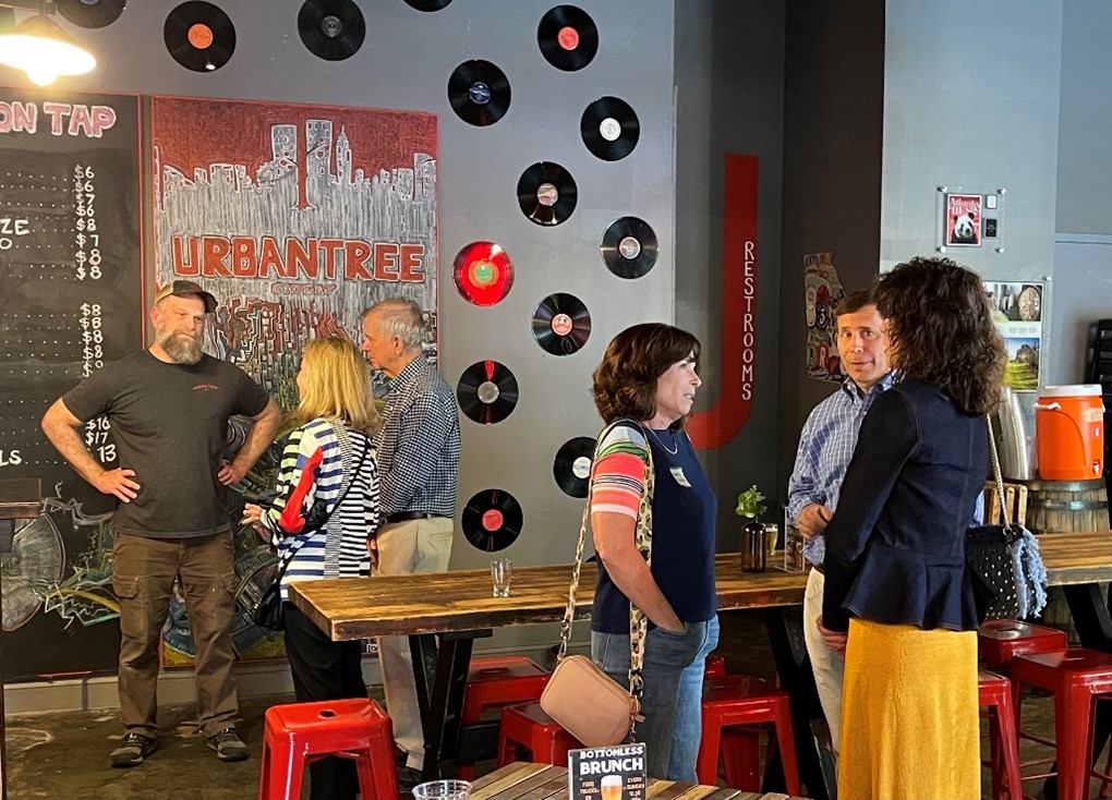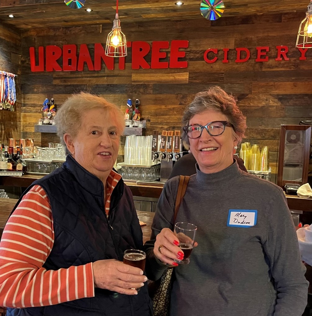 ARCS members spent a wonderful April afternoon learning about the science of cider making – and savoring the handcrafted hard cider - at the UrbanTree Cidery in West Midtown. UrbanTree Cidery is the first farm-to-table cidery in Atlanta, making cider from apples harvested and hand-pressed in North Georgia. The cider is then transported to the UrbanTree Cidery in West Midtown for onsite fermentation, blending, aging, infusion, and carbonation. Each cider recipe has been perfected over time, and ARCS members enjoyed tasting many different flavors, including Original Dry, Barrel-Aged, Blueberry, Lavendar-Lemon, and many others. What could be more enjoyable than connecting with friends through the delicious complexity of science and cider!