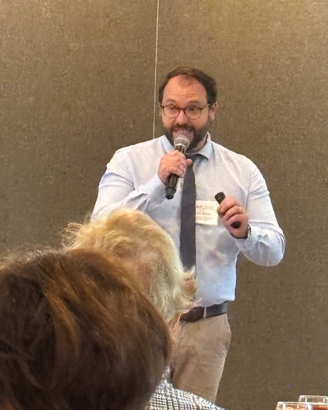 Over fifty ARCS members and guests attended the ARCS Atlanta Annual Meeting and Luncheon held on May 7, 2025, at Ansley Golf Club. Our speakers were Dr. Jon P. Mochel, Professor of Systems Pharmacology and Founding Director of Precision One Health Initiative at UGA, and Dr. Christopher Zdyrski, Research Professional of Precision One Health. Dr. Mochel and Dr. Zdyrski gave a fascinating presentation titled “Transforming Life for Man and Man’s Best Friend” on research to develop personalized healthcare strategies that provide individuals with the most effective treatment options at the right time. The mission of Precision One Health is centered on personalized medicine, which includes risk assessment, exploration of significant biological mutations, vaccine and drug development, and the selection of customized therapies based on molecular profiling.