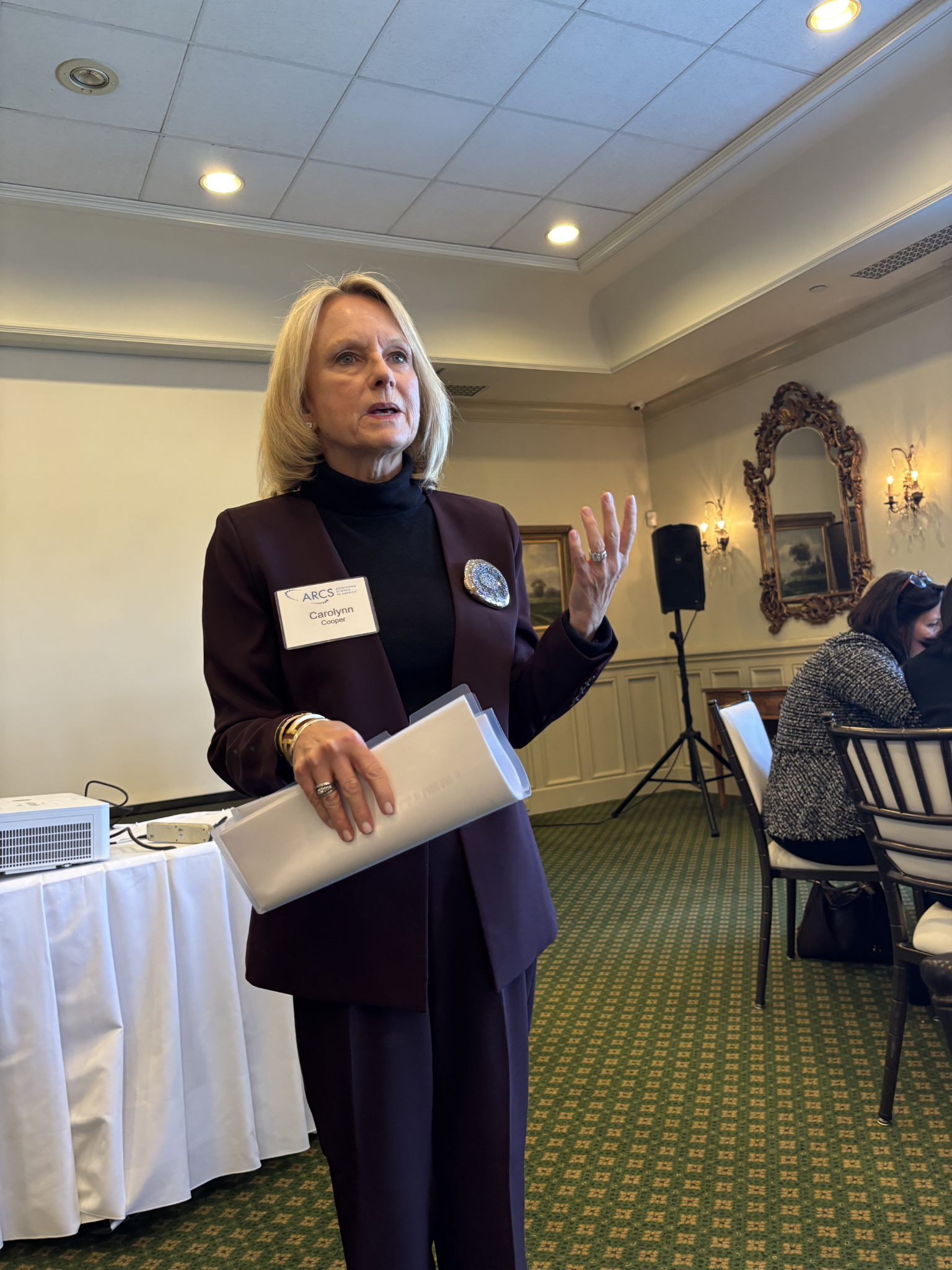 Another highlight of the afternoon was the presentation of the 2025 ARCS Light Award to Sally McDaniel. In presenting the award, 2024 ARCS Light Leslie Petter said that Sally has consistently exemplified exceptional service and leadership within both the Atlanta Chapter and ARCS National and that we are grateful for her willingness to serve, her impactful leadership, and her unwavering dedication to ARCS.