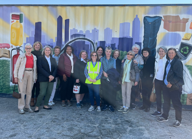 CHaRM, located at 1110 Hill Street in SE Atlanta, not far from the old Atlanta Braves Stadium was founded in 2015 as a part of Live Thrive Atlanta, an Atlanta-based nonprofit organization working since 2010 to create a community that cares about a healthy and sustainable environment. Peggy explained which items are handled by curbside recycling programs in the Metro area and explained that CHaRM is equipped to handle many things that curbside is not. Some of the many items accepted at CHaRM are appliances, bikes, cardboard, chemicals, compost, cooking oil, clothing and other donations, electronics, glass, mattresses, metals, musical instruments, paint, paper, books, styrofoam and tires. It is apparent that CHaRM is much more than simply a recycling center. After hearing Peggy’s presentation and having a lively Q&A, we toured the 14+ stations to see first-hand what CHaRM does with donations which would typically end up in a landfill. Through educating the public and the hard work of their employees and volunteers, they keep hazardous materials out of our air, water and soil. An astounding statistic is that ninety-six percent of all items brought to CHaRM will be recycled, re-purposed or re-engineered.