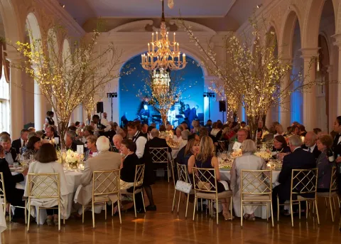 What a Celebration! 129 ARCS Atlanta members and guests were treated to a fabulous 25th Anniversary Jubilee Event on April 23 at the Piedmont Driving Club. After enjoying passed hors d’oeuvres and drinks at the bar, guests were wowed, upon entering the ballroom, by the fantastic floral décor so creatively designed by Parties to Die For. The tall cherry tree branches, lower pastel flower arrangements and votive candles set the tone for a magical evening.