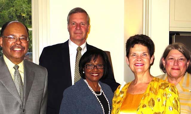 At the annual celebration are (from left) Erroll Davis, Georgia Tech President Bud Peterson, Elaine Davis, Val Peterson, and Pat Leake.