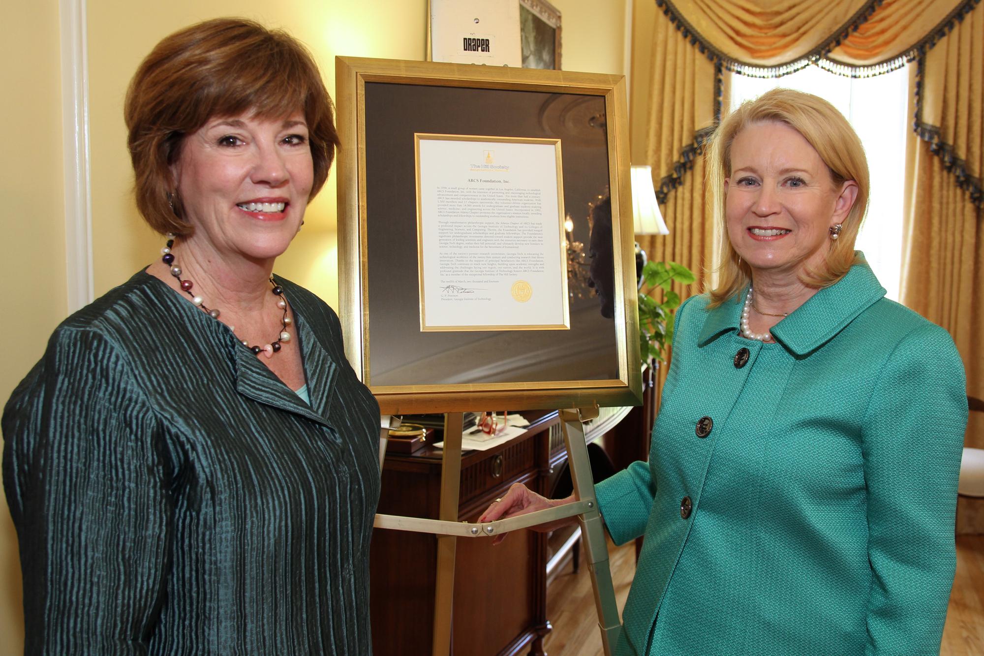 Jane Dolinger and Nancy Chambers with Georgia Tech Hill Society Citation