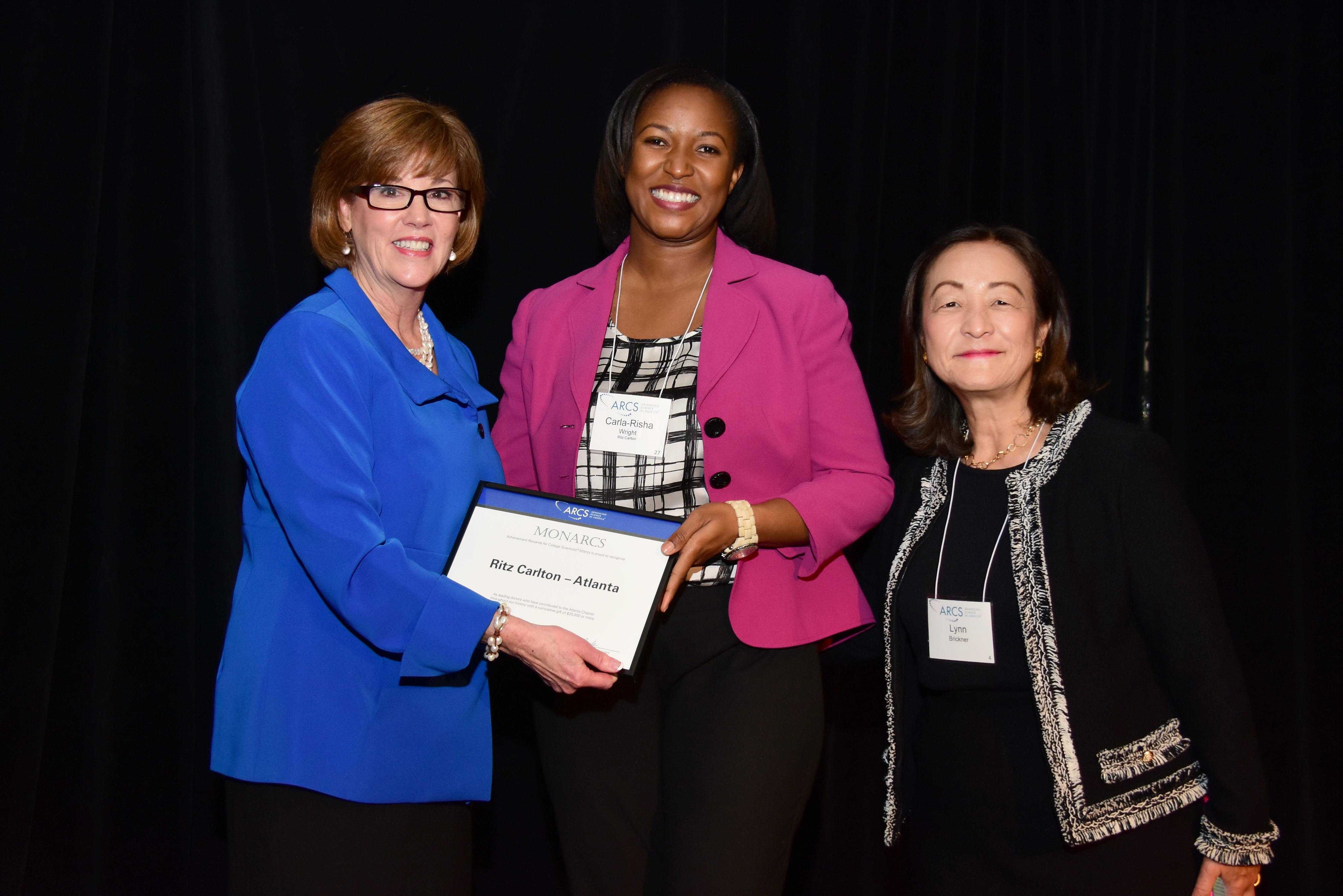 Jane Dolinger, ARCS Foundation Atlanta Chapter President, Carla-Risha Wright, MONARCS Ritz Carlton – Atlanta, and Lynn Brickner, ARCS Foundation National President