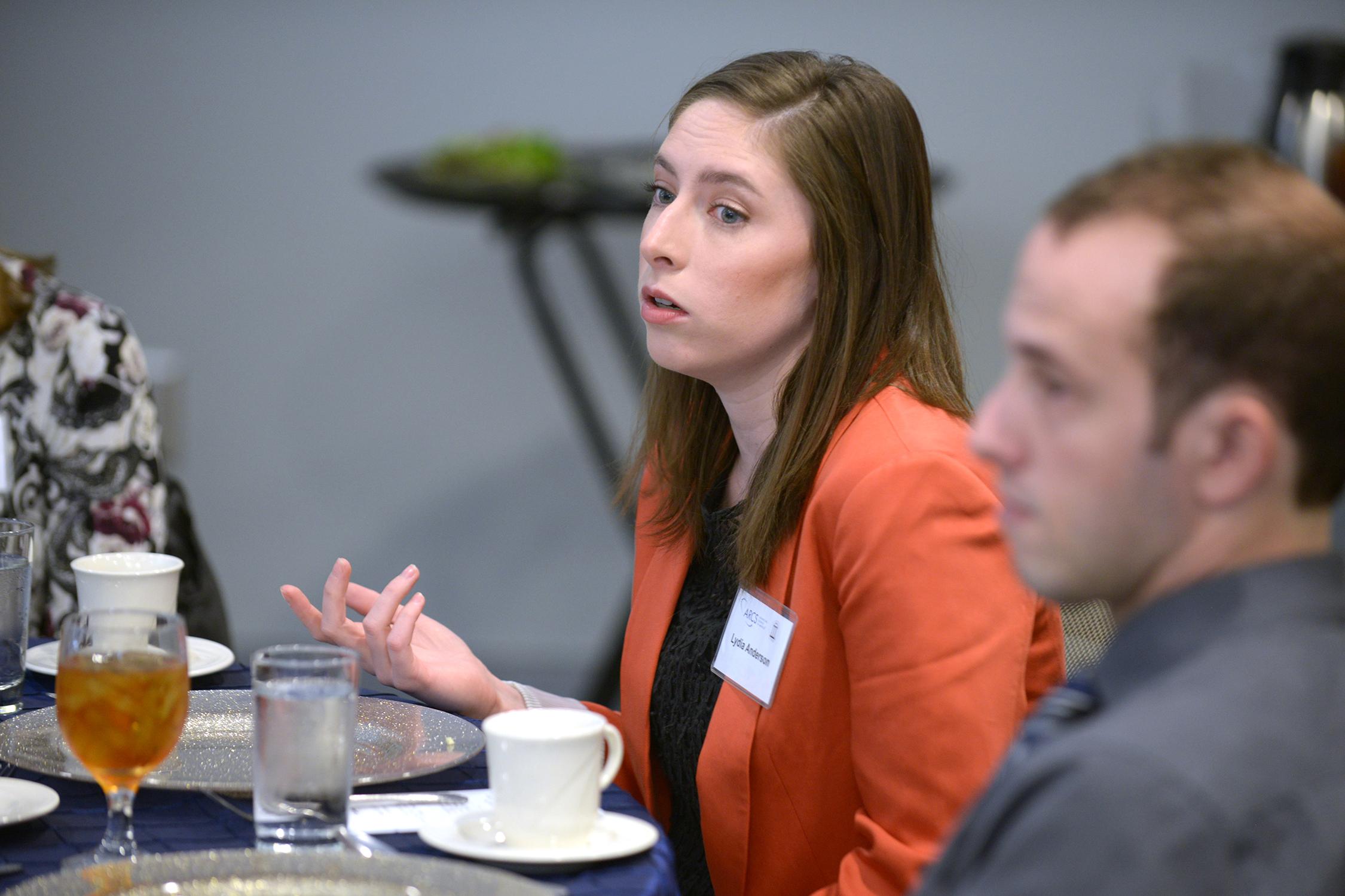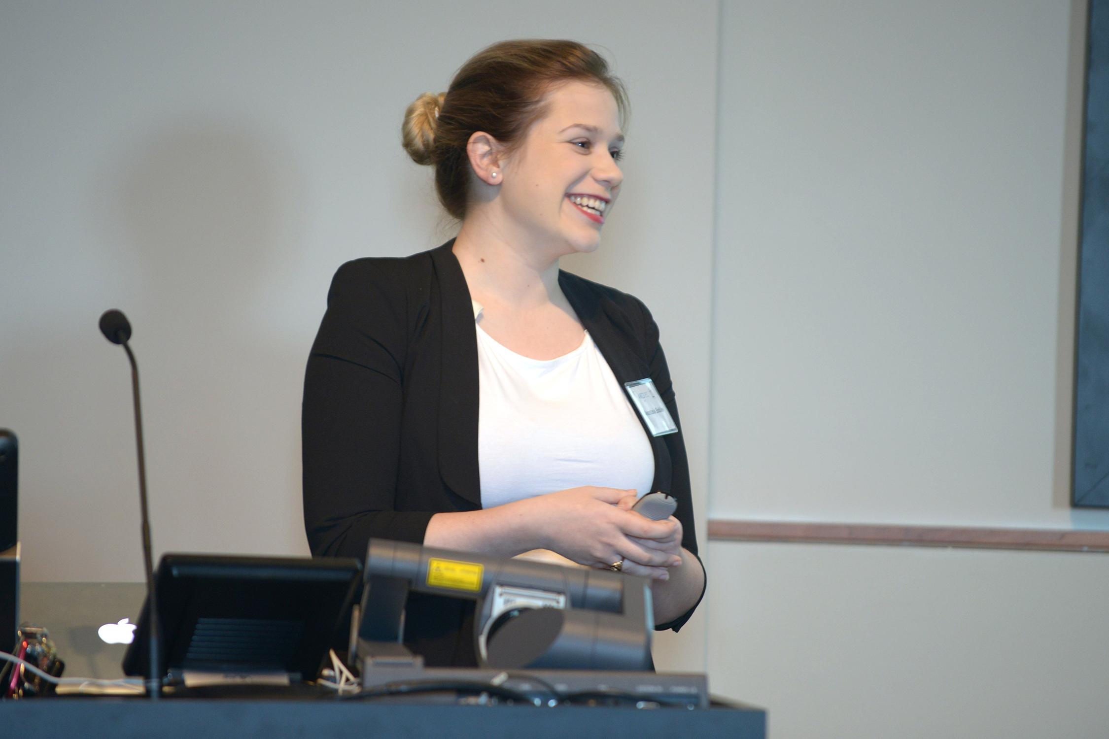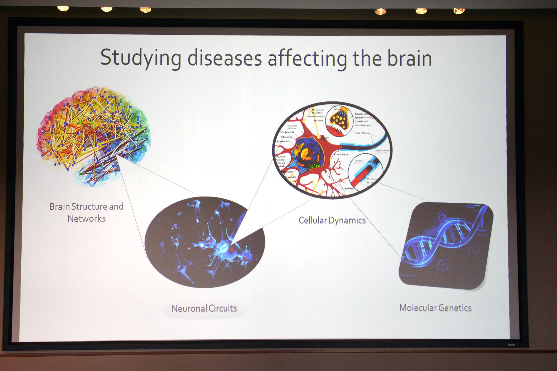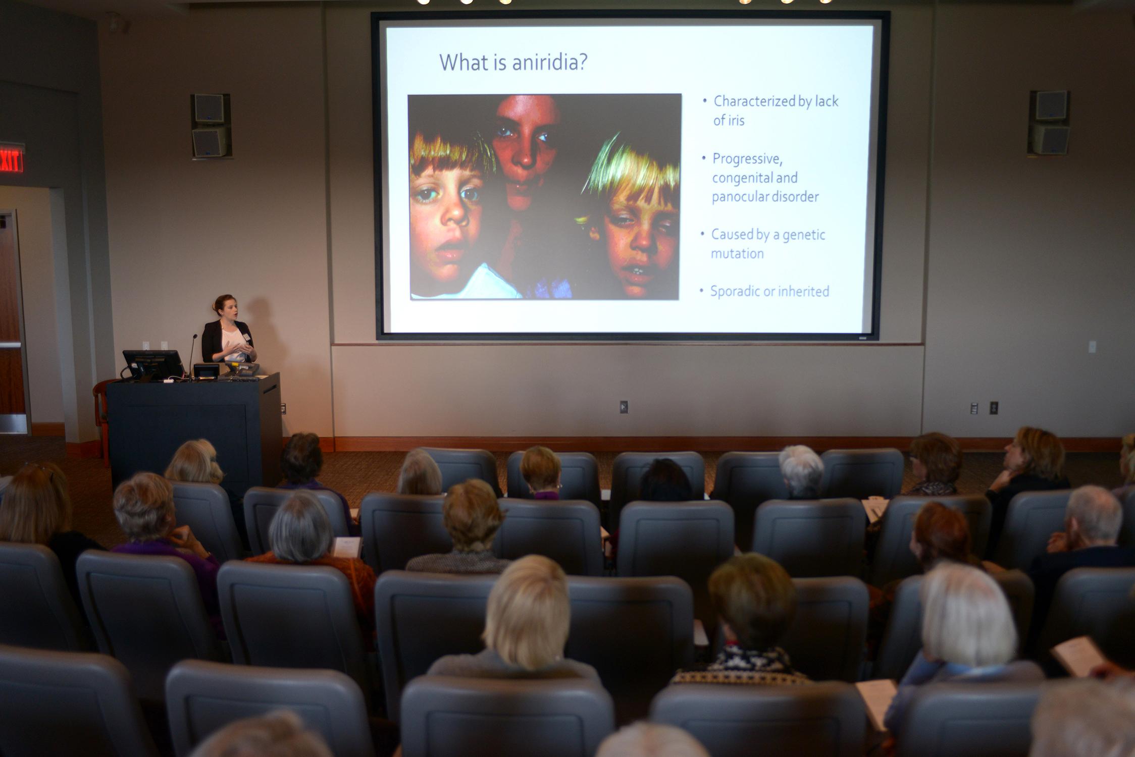 Anastasia Bobilev, a Franklin Foundation Neuroimaging Fellow and Ph.D. candidate in Neuroscience, discussed the PAX6 gene, a transcription factor in brain and eye development, and its role in human brain structure and auditory processing function.