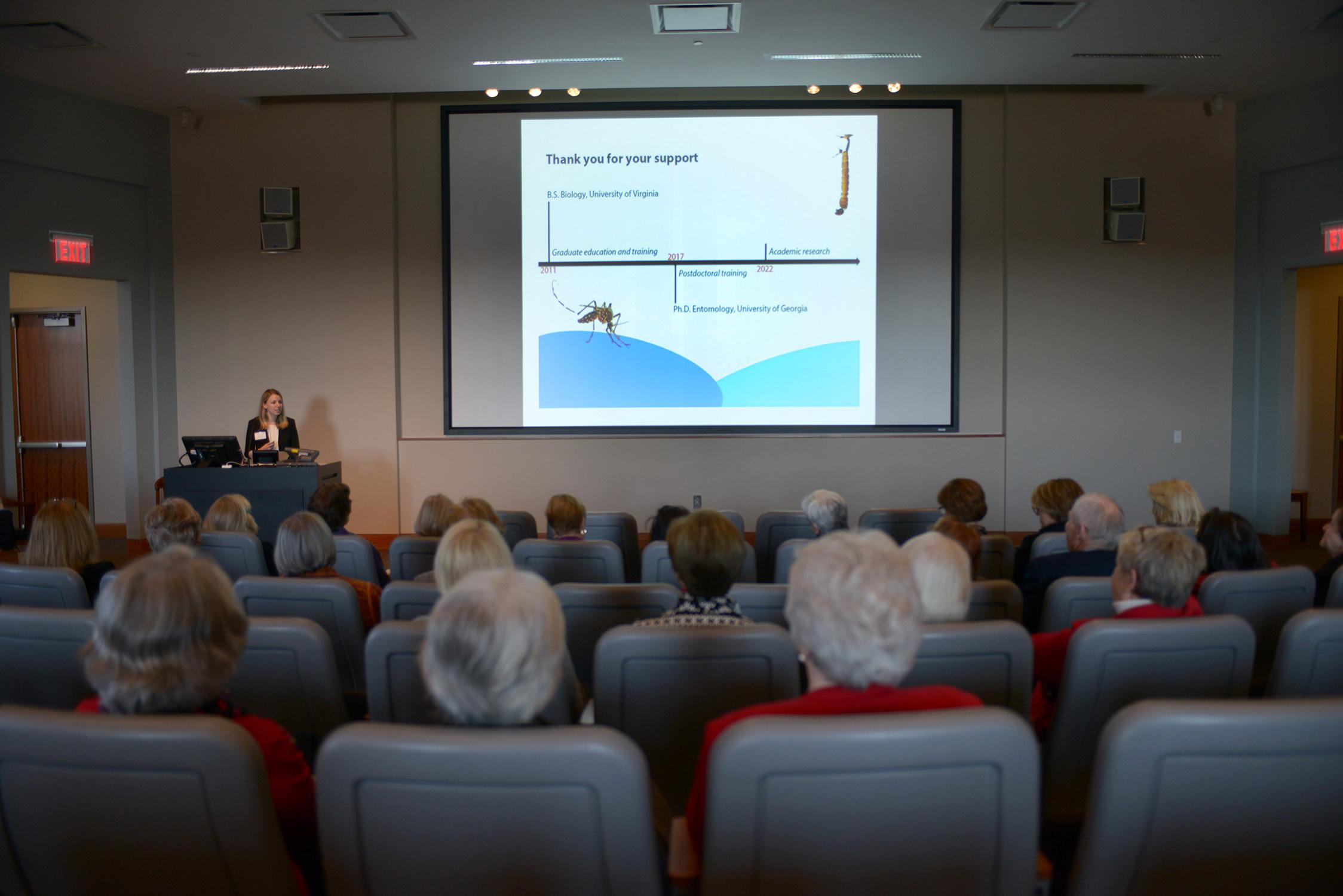 Kerri Coon, a Ph.D. candidate in the Department of Entomology, presented her research on how gut bacteria contribute to the development and reproduction of disease-transmitting mosquitoes. Comments related to the Zika virus were especially timely.