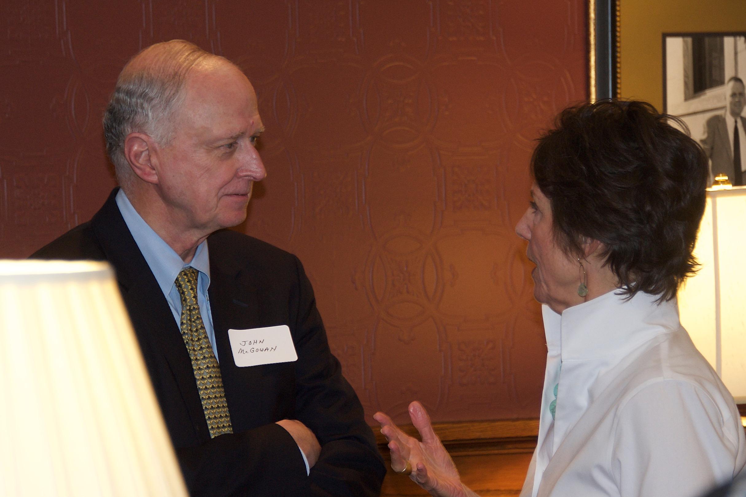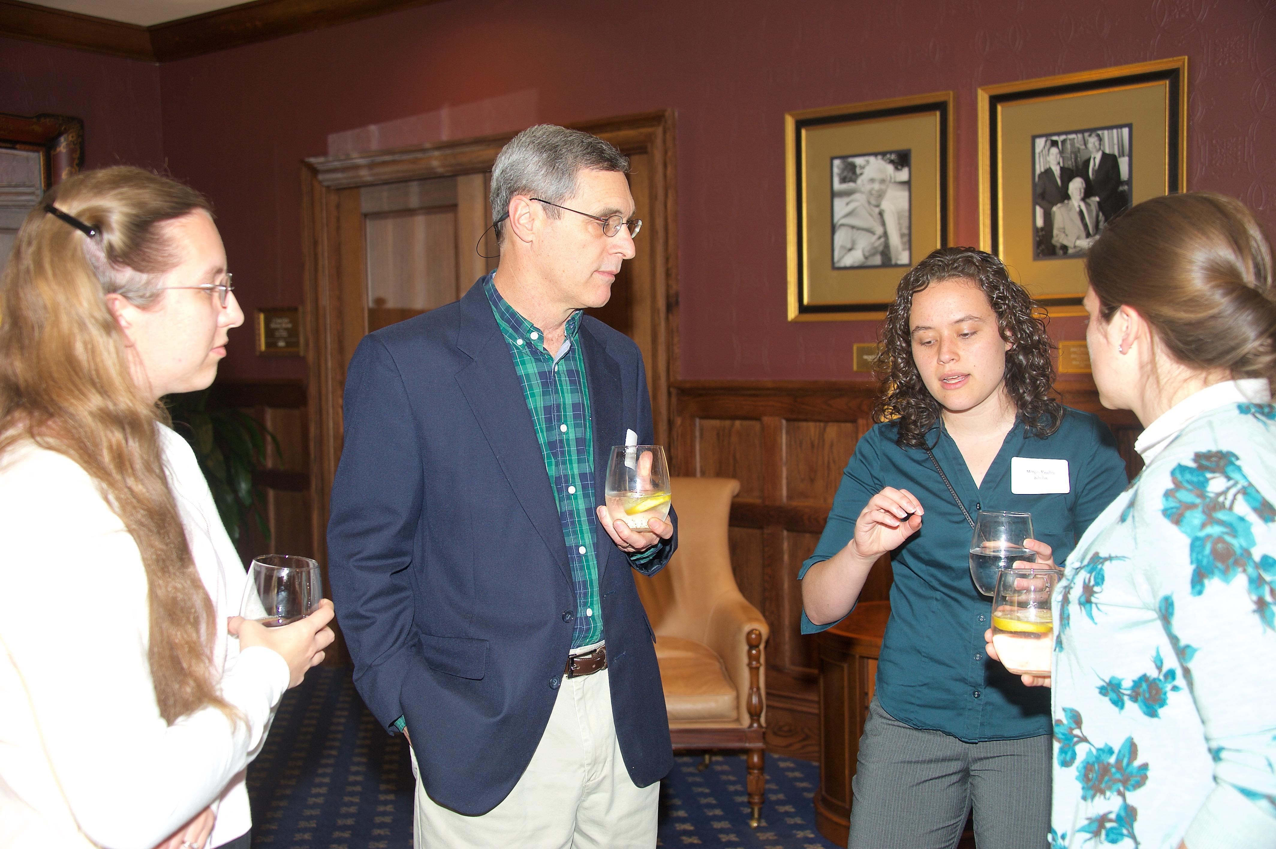 On Wednesday, March 30, the Atlanta Chapter of ARCS Foundation honored its Century level donors and above at its second annual Donor Appreciation Reception. Emory University President Jim Wagner and Debbie Wagner hosted the event at the Miller-Ward Alumni House on the Emory University campus. Attendees included current Emory University ARCS Scholars, advisors, and Dr. Michael Zwick, Assistant Professor in the Departments of Human Genetics and Pediatrics at Emory University, Assistant Dean of Research at the Emory University School of Medicine, and Assistant Vice President for Research at the Robert W. Woodruff Health Sciences Center. Dr. Zwick, an ARCS Scholar at the University of California at Davis during the 1997-1998 academic year, described the importance of the financial support and encouragement provided by ARCS Foundation to our nation's future scientists. Donors enjoyed the beautiful setting, the delicious refreshments and, most of all, having an opportunity to chat informally with ARCS Scholars, Emory University professors and administrators, and each other.